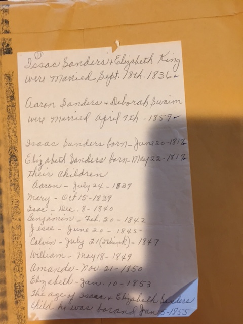 and we are both descendants of Isaac and Elizabeth Sanders (both born