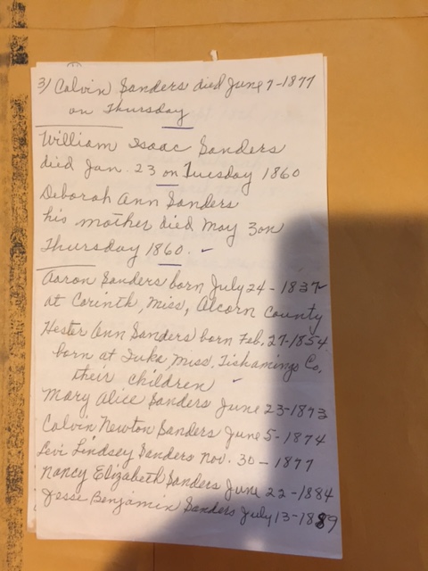 Files concerning Sanders genealogy that are